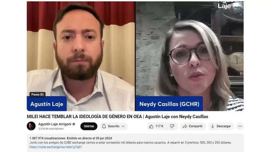 Terrones Godoy published this video on his YouTube channel in June 2024 account titled: “The best airdrop of 2024? Being an early adopter of Cube can be a great goal,” and shortly after, Cube Exchange appeared as a sponsor of Agustín Laje, another influencer close to the Milei administration.