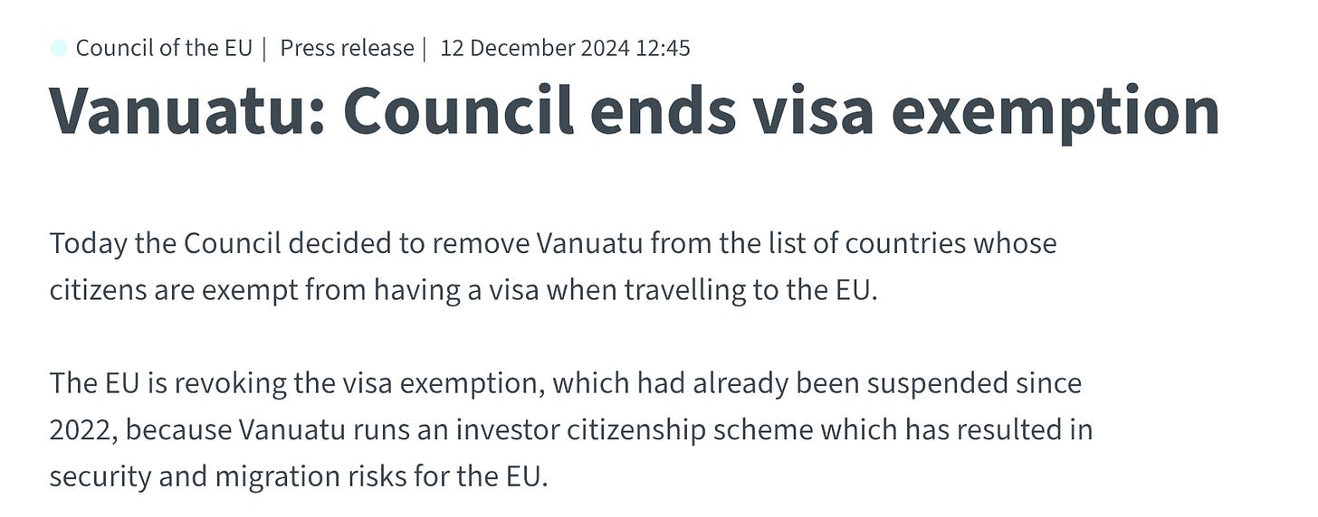 So Milei & Co are definitely aware of the importance of not staining the Argentine passport through a CBI program — some programs like Vanuatu have ran into issues like no more visa free travel to the EU because of the low investment amount and not enough due diligence in the application process.