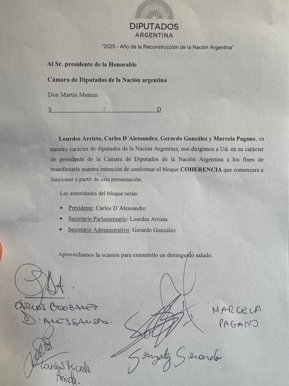 After voting against Milei’s veto, Pagano and D’Alessandro finally sealed their rift with the creation of a new opposition bloc coined “Coherencia”, along with former La Libertad Avanza deputy Lourdes Arrieta, and Gerardo González from Formosa.